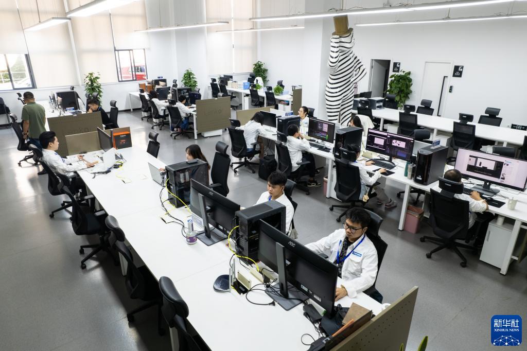 9月29日,在位于常德科技創新創業孵化產業園的湖南聯科科技有限公司,人們在辦公區工作(無人機照片)。