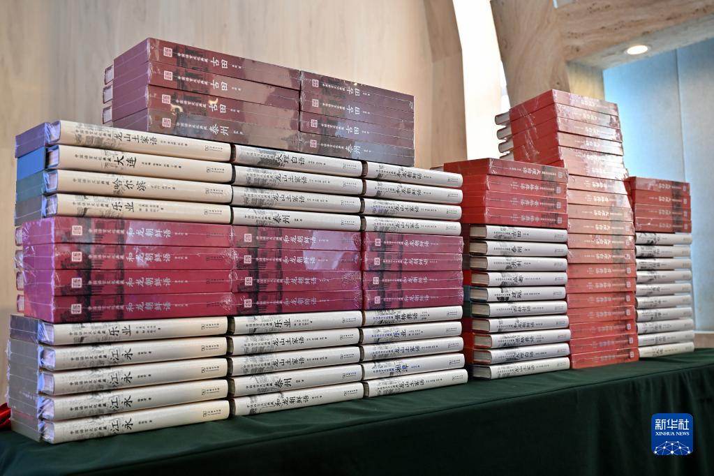 這是現場擺放的中國語言資源保護工程成果《中國語言文化典藏》第二輯20冊的相關書籍(9月29日攝)。