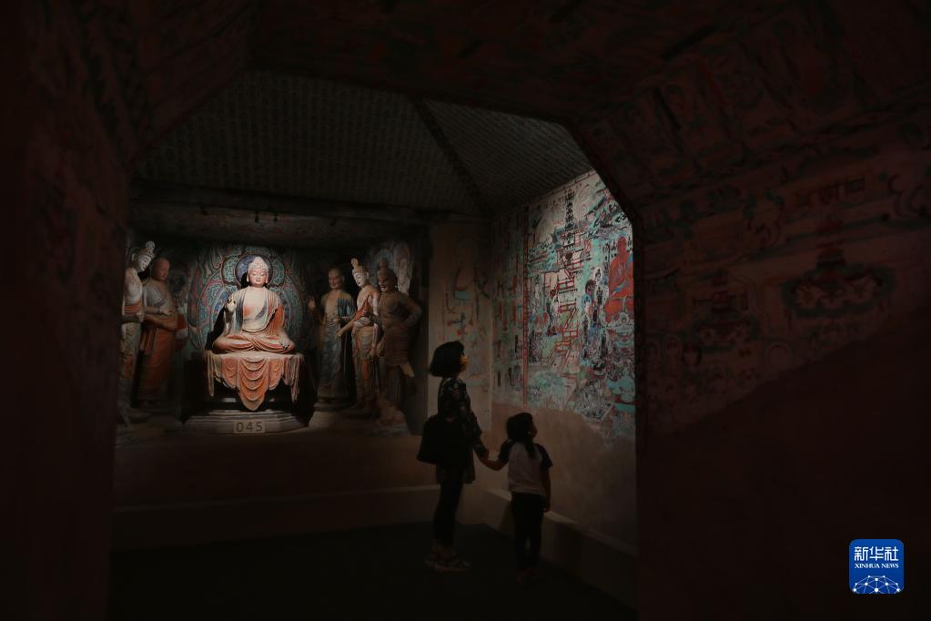 9月29日,觀眾參觀等比例高保真數字化3D打印復制的敦煌莫高窟第45窟。