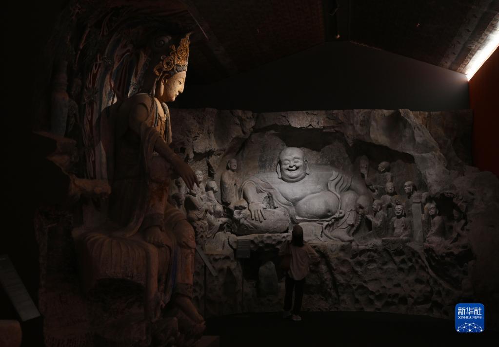 9月29日,觀眾參觀等比例高保真數字化3D打印復制的杭州西湖飛來峰冷泉溪南岸布袋彌勒及十八羅漢像。