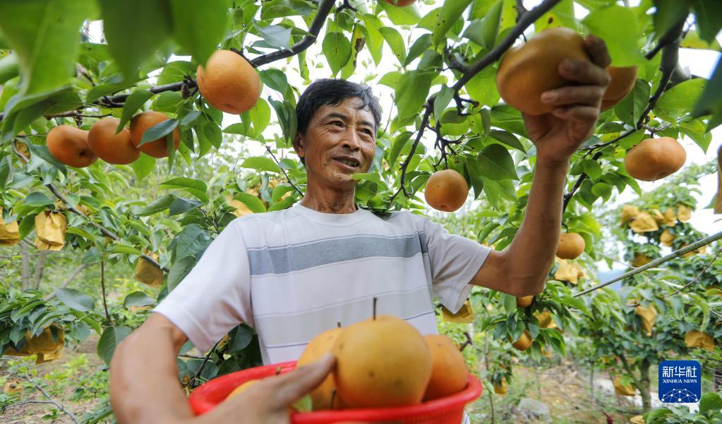 9月29日,果農在貴州省貴陽市開陽縣石頭村采摘黃梨。