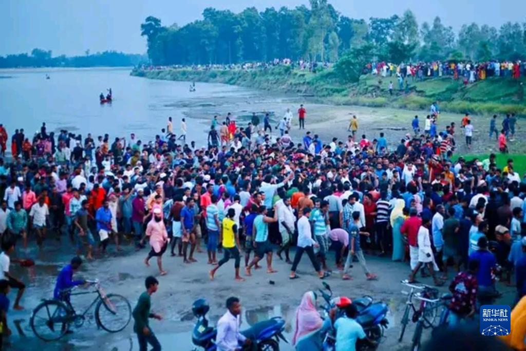9月26日,在孟加拉國班賈戈爾地區,人們聚集在發生沉船事故的河邊。