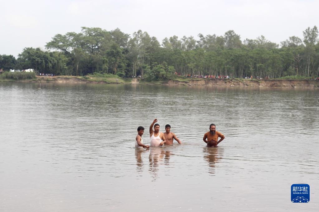 9月26日,在孟加拉國班賈戈爾地區,人們在發生沉船事故的河中參與打撈工作。