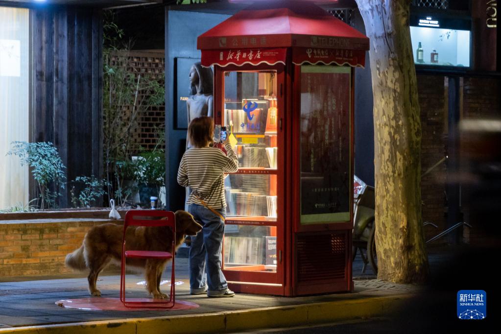近日,在上海市長寧區新華路上,新華路街道聯合新華書店和中國電信,將5個閑置電話亭重新布置為一平方米大小的微型書店——“新華路書店”。采用全自助式的新華路書店是公益性質快閃書店,于9月29日至10月3日對公眾開放。書店包含“綜合”“教輔”“交換”“少兒”主題。市民可隨意取下店里的書坐在路旁閱讀,或掃碼購買帶走,出售書籍的款項后續將用于助力公益事業。