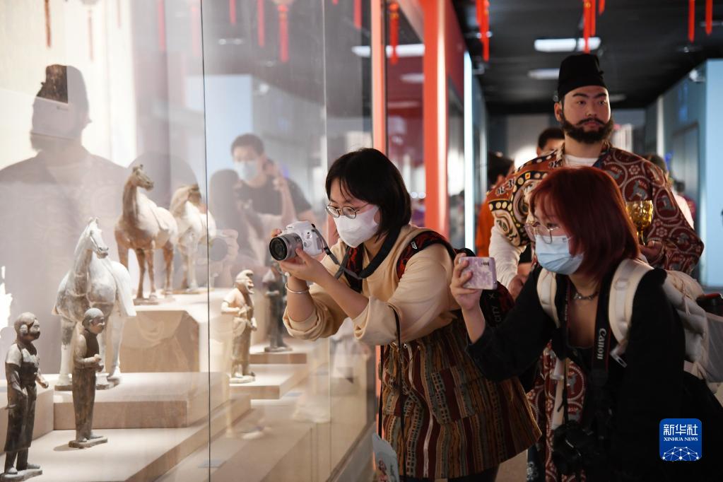 9月30日,觀眾在西安博物院參觀大唐金鄉縣主展。