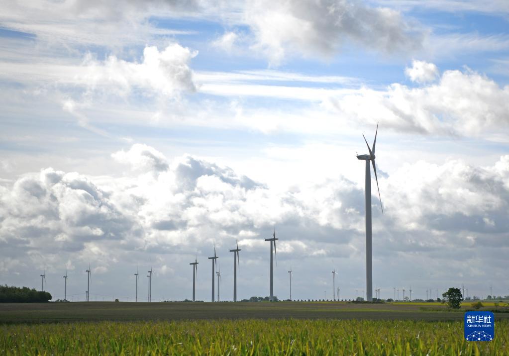 這是9月15日在德國勃蘭登堡州拍攝的風電設施。