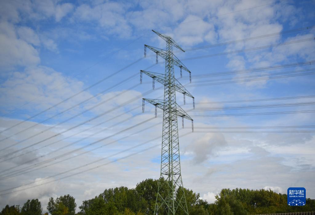 這是9月15日在德國柏林市郊拍攝的高壓電網。