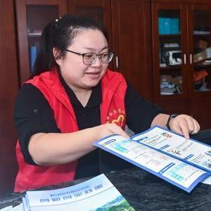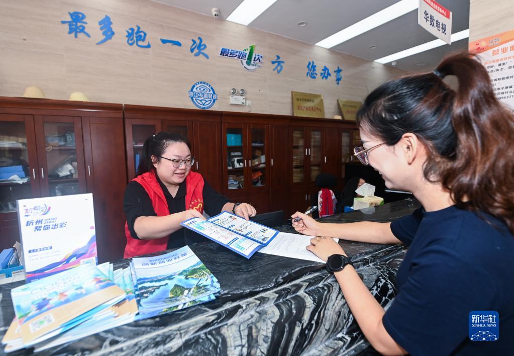 9月30日,在杭州市臨安區錦南街道便民服務中心,工作人員(左)給企業員工解釋最新的人才政策并讓她填寫相關表格。