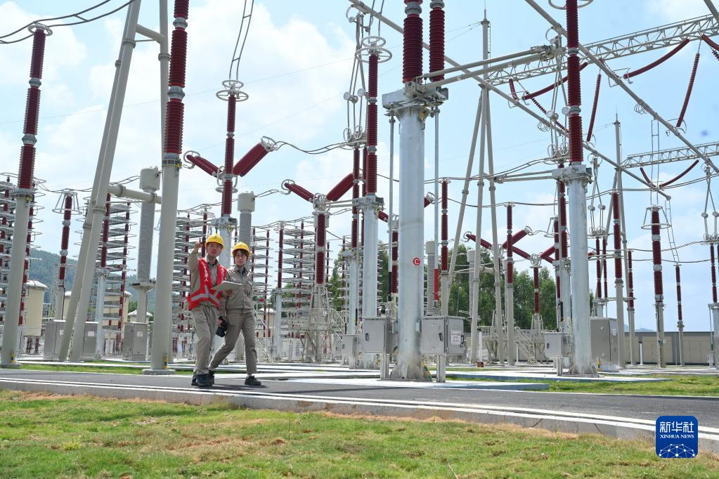 9月30日,閩粵電力聯網工程運維人員在巡視設備。