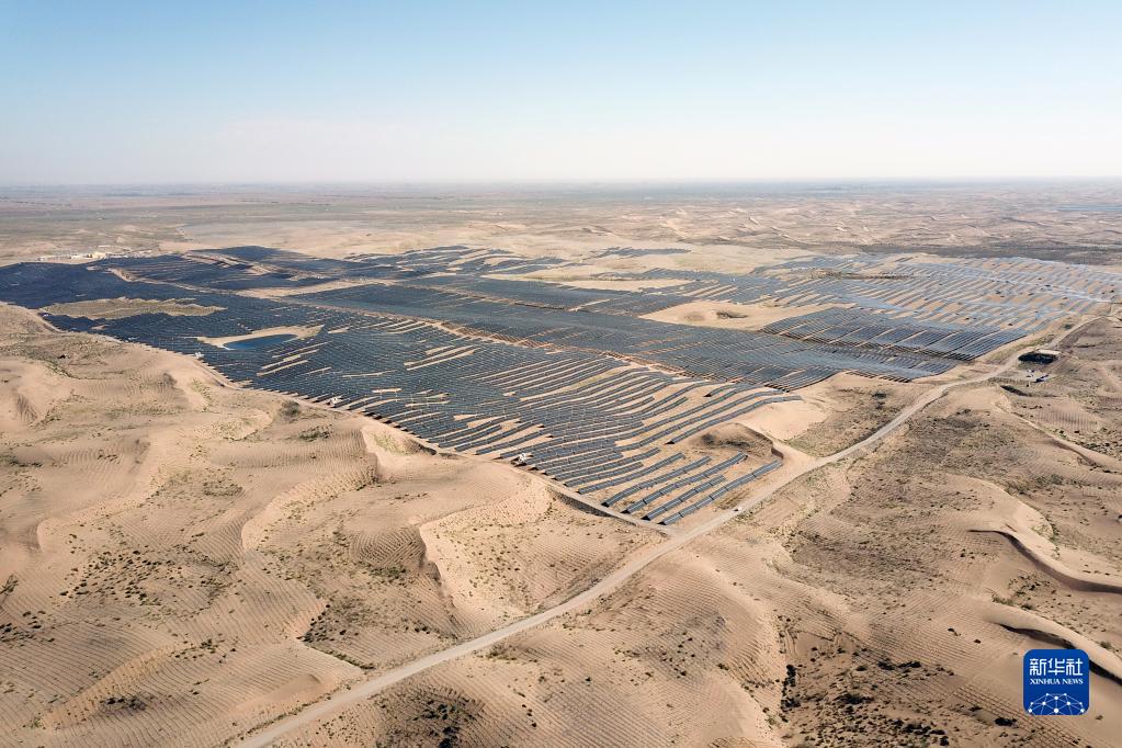 作為我國以沙漠、戈壁、荒漠地區為重點的大型風電光伏基地項目,甘肅武威50萬千瓦立體光伏治沙產業化示范項目自啟動建設以來,將太陽能開發與騰格里沙漠治理有機結合,在建設光伏電站的同時,在光伏板下栽植沙生植物,既能起到防風固沙的作用,也為下一步發展板下農牧業奠定基礎。目前,該項目建設已接近尾聲,預計今年年底建成并網發電。