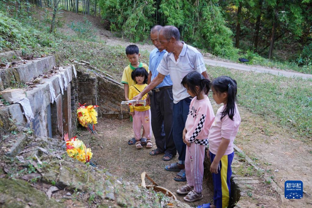 9月15日,謝南京帶著家人一起祭掃烈士墓。