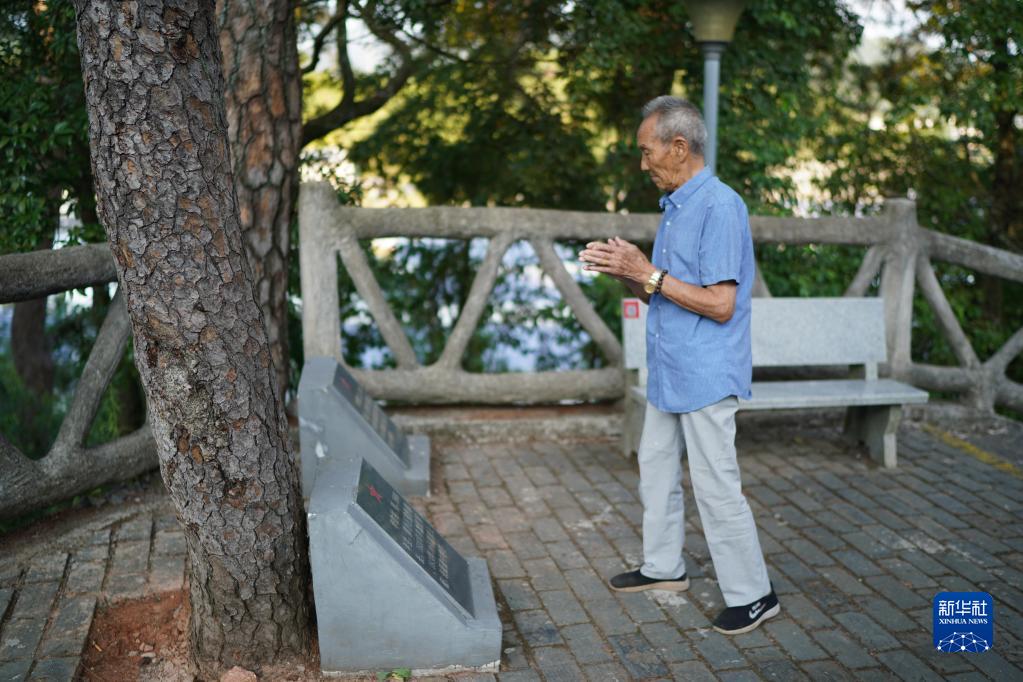 9月16日,紅軍烈士華欽材的后代華從祁來到松樹下祭拜烈士。