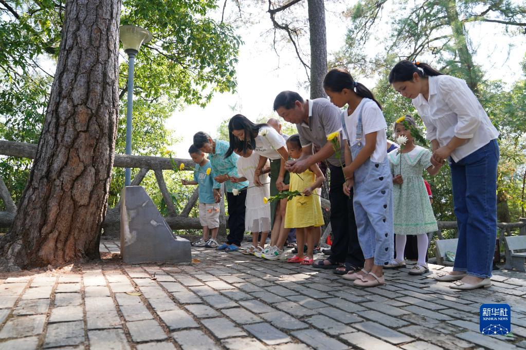 9月17日,華屋村村民在松樹下祭拜烈士。