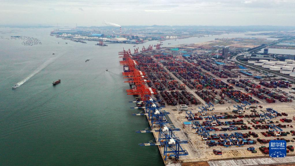 9月29日拍攝的廣西欽州港碼頭(無人機照片)。