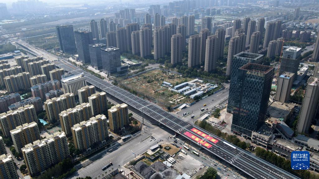 這是9月30日拍攝的由中鐵十局三建公司承建的合肥市宿松路(南二環—深圳路)快速化改造工程1標段(無人機照片)。