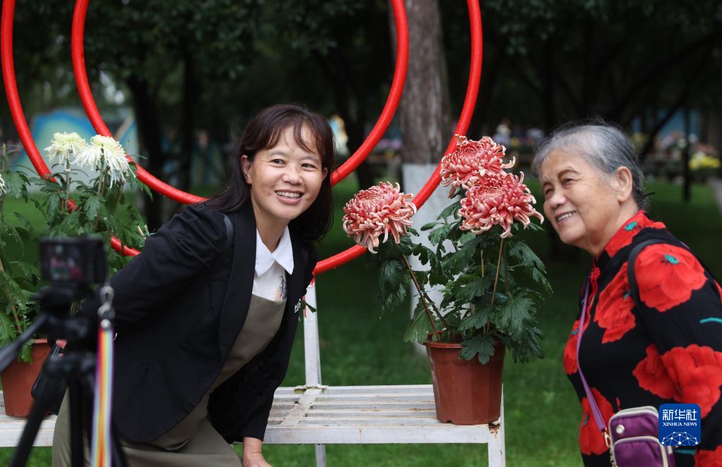 10月1日,游客在昆明市大觀公園舉行的第28屆金秋菊花展上賞菊。