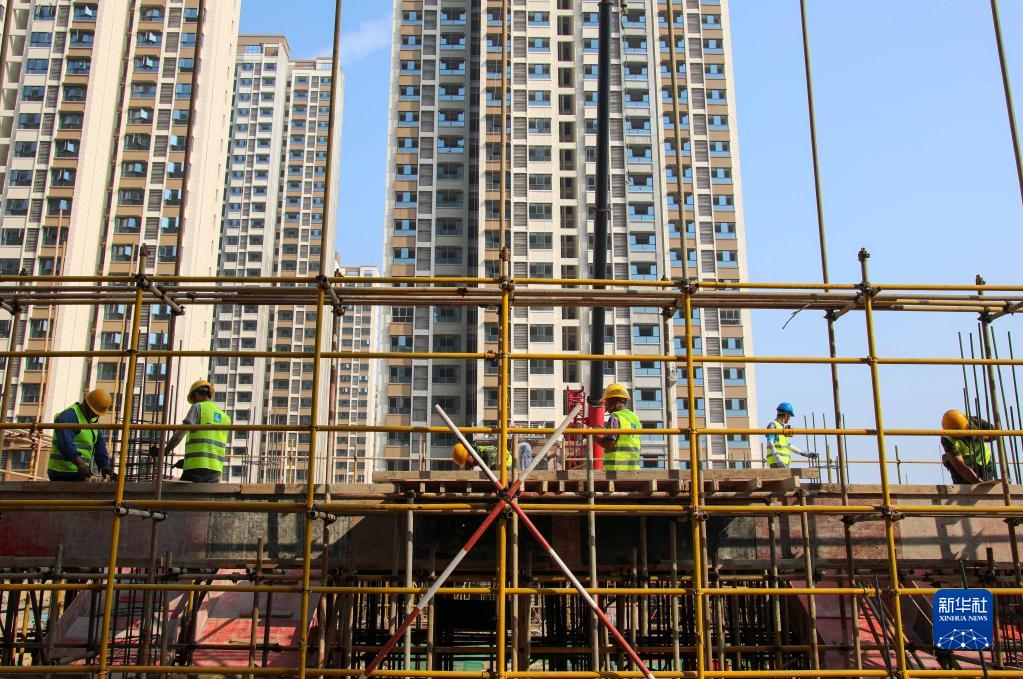 10月1日,工人在中建二局合肥城西橋家園A組團項目工地作業。