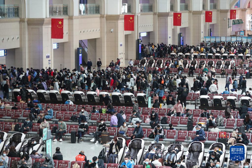 10月1日,旅客在哈爾濱火車站候車大廳候車。