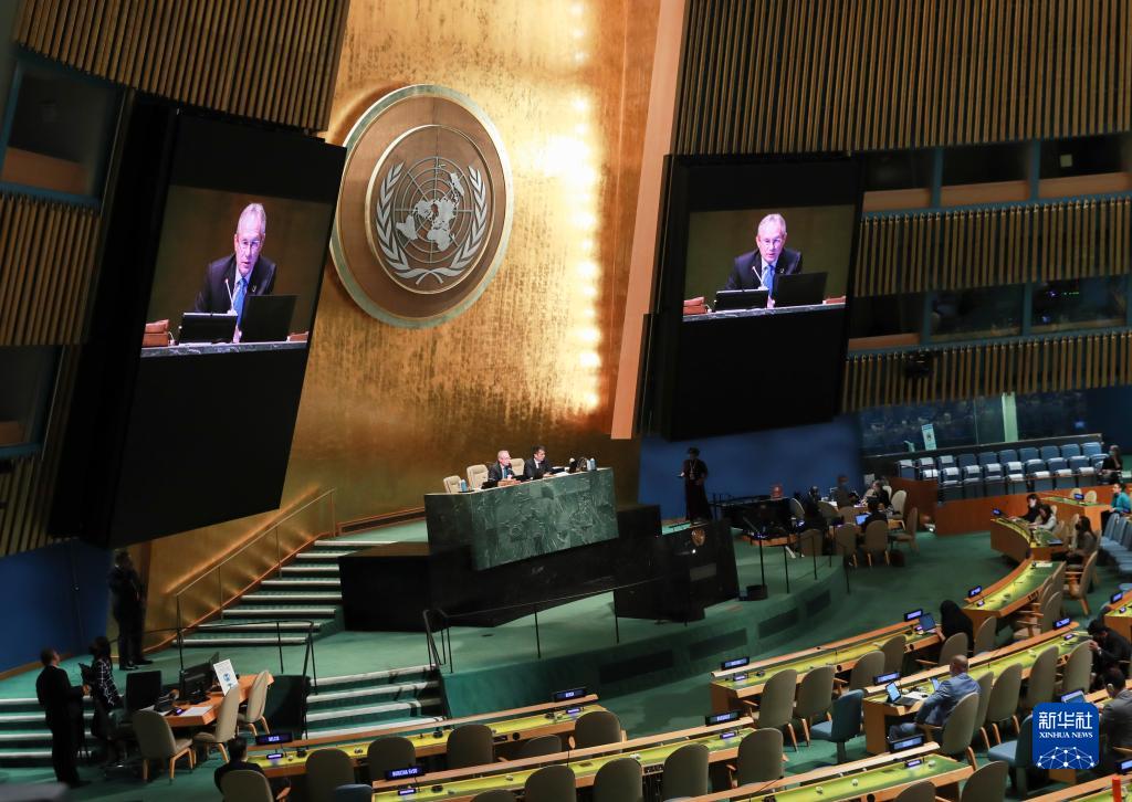 9月26日,在位于紐約的聯合國總部,第77屆聯大主席克勒希發表一般性辯論閉幕講話。
