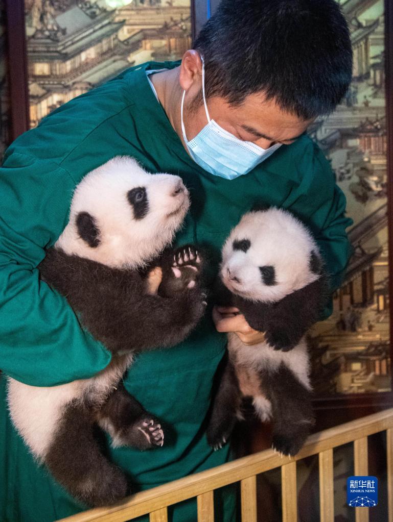 當日,在重慶動物園大熊貓館,7月22日出生的雙胞胎大熊貓幼仔與游客首次見面,這對雙胞胎兄妹目前健康狀況良好。它們的母親“二順”曾作為友好使者,從2013年3月起旅居加拿大多倫多動物園和卡爾加里動物園,2020年11月底回國,今年3月在中國大熊貓保護研究中心與大熊貓“青青”完成自然交配。