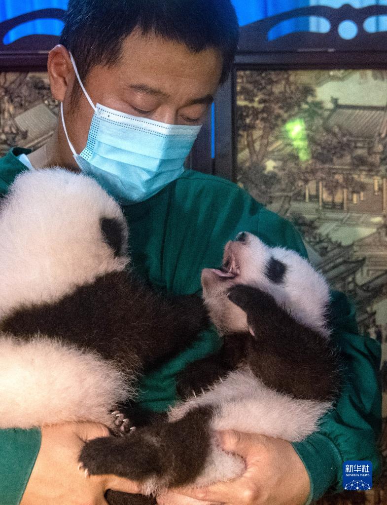 當日,在重慶動物園大熊貓館,7月22日出生的雙胞胎大熊貓幼仔與游客首次見面,這對雙胞胎兄妹目前健康狀況良好。它們的母親“二順”曾作為友好使者,從2013年3月起旅居加拿大多倫多動物園和卡爾加里動物園,2020年11月底回國,今年3月在中國大熊貓保護研究中心與大熊貓“青青”完成自然交配。