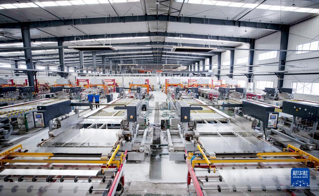 這是位于寧夏石嘴山市的寧夏金晶科技有限公司的光伏玻璃深加工生產線(6月1日攝)。