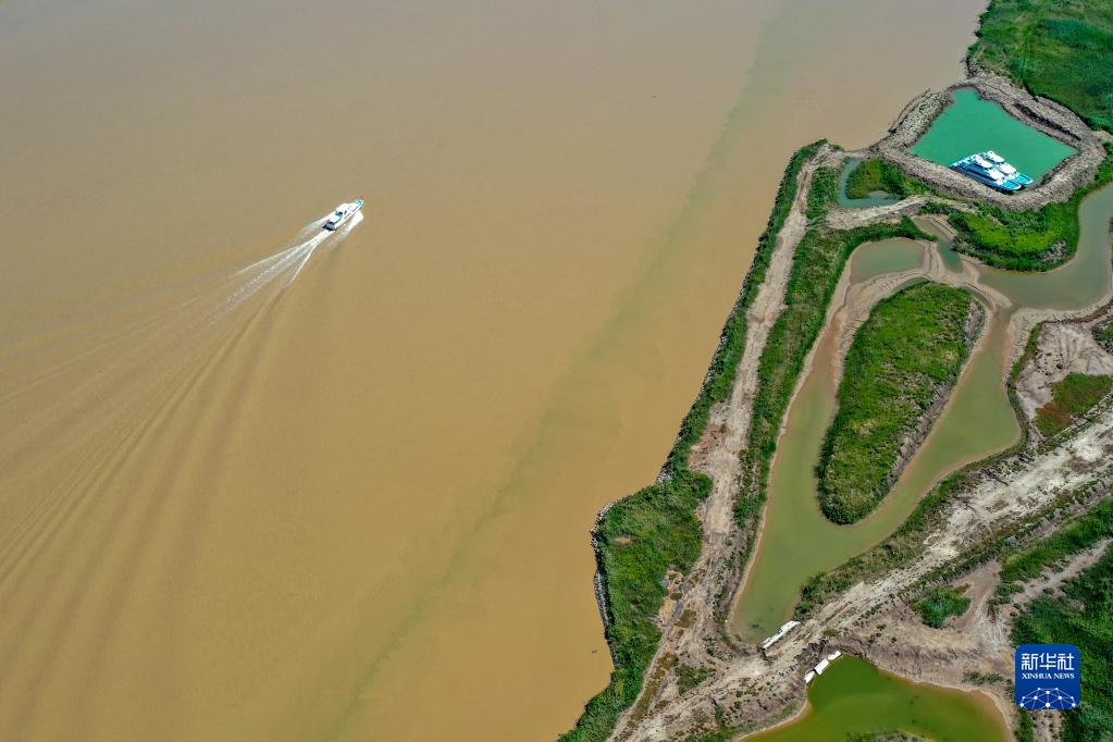 這是在山東黃河三角洲國家級自然保護區拍攝的黃河河道(8月17日攝,無人機照片)。
