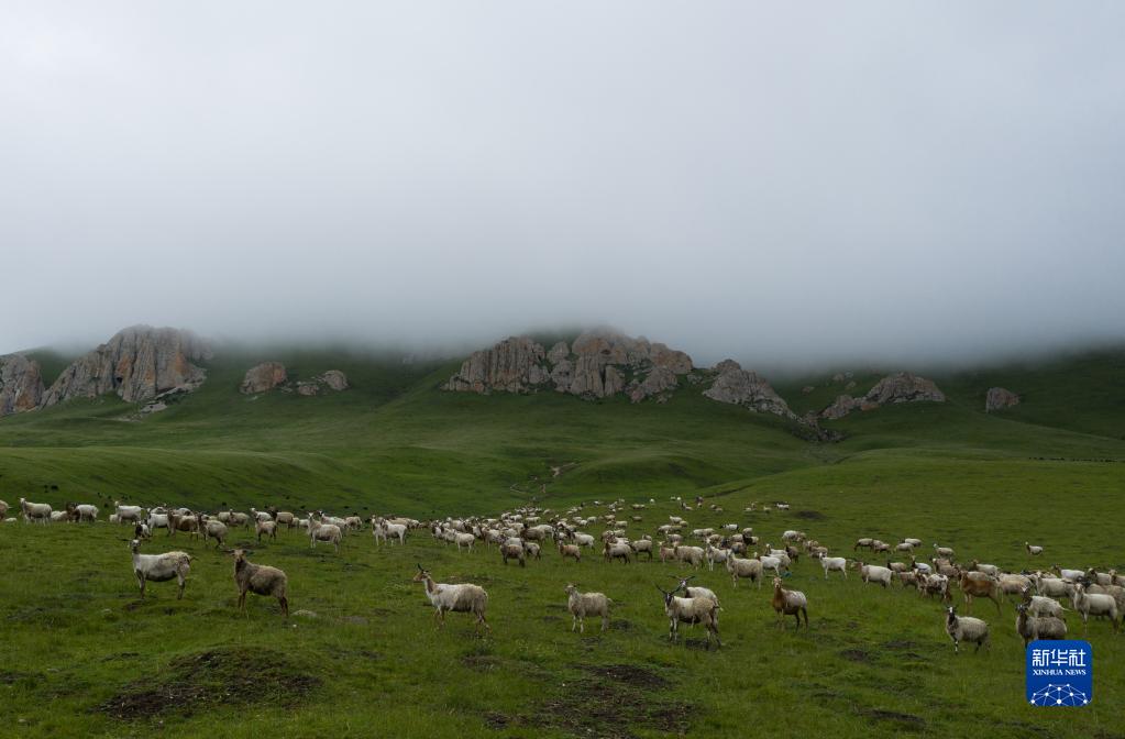 在四川省若爾蓋縣麥溪鄉黑河牧場上,牛羊成群(2022年7月25日攝,無人機照片)。