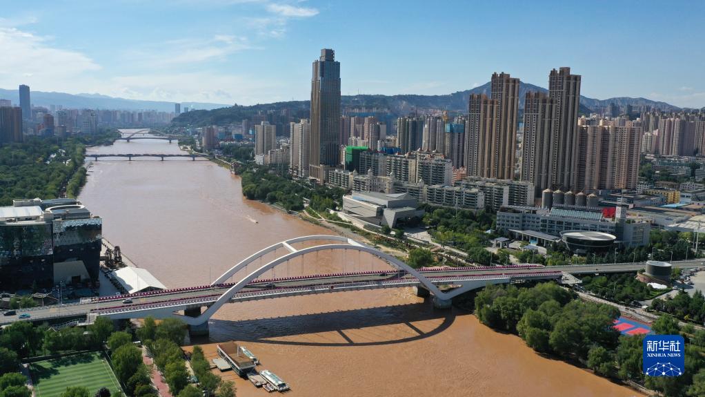 這是在甘肅省蘭州市拍攝的黃河兩岸城市風光(9月5日攝,無人機照片)。