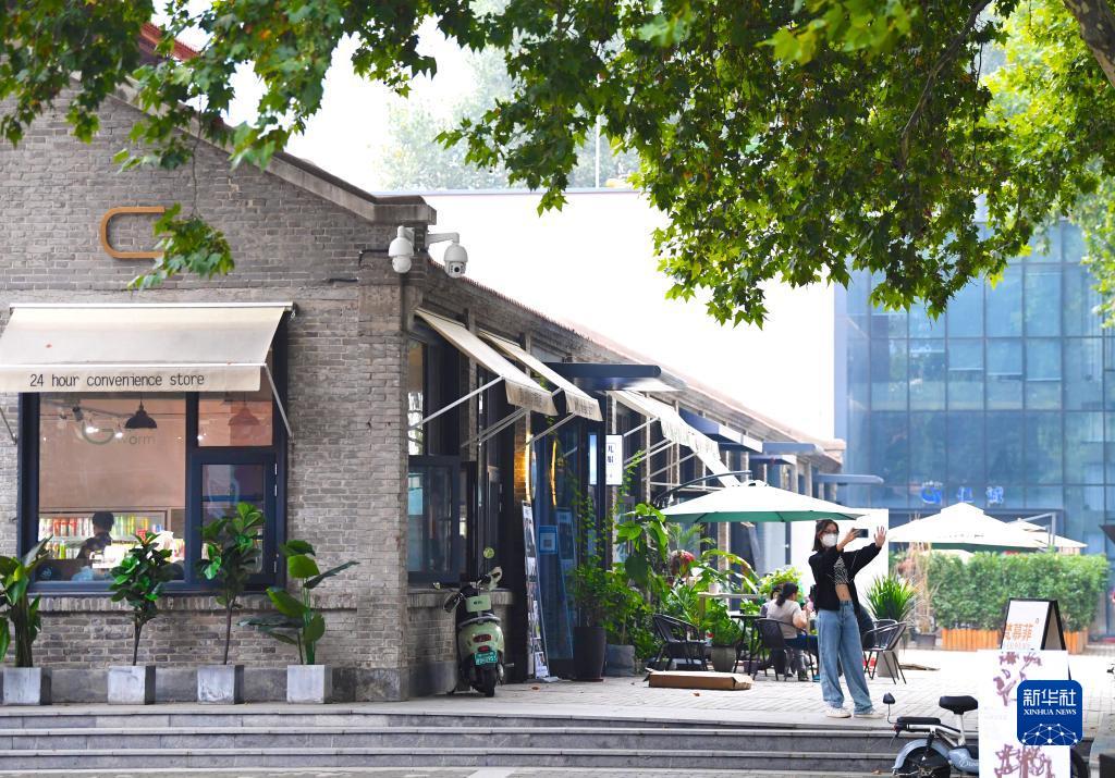 10月1日,市民在河南省鄭州市芝麻街1958雙創園里游玩。
