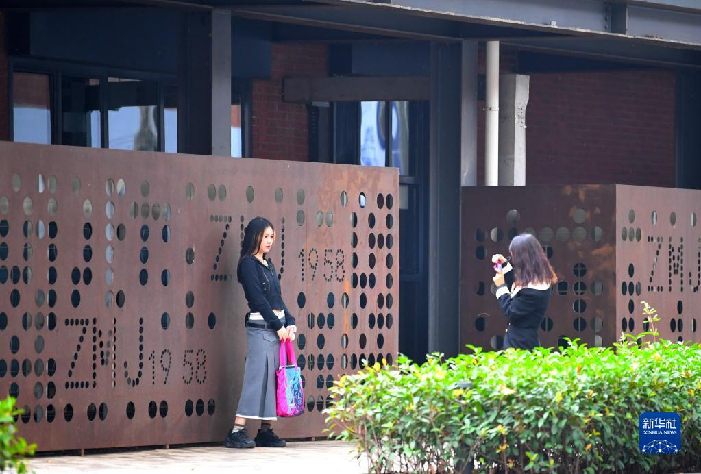 10月1日,市民在河南省鄭州市芝麻街1958雙創園里拍照游玩。