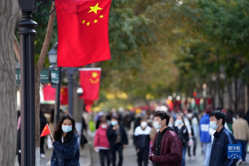 10月1日,市民在黑龍江省哈爾濱市中央大街散步。