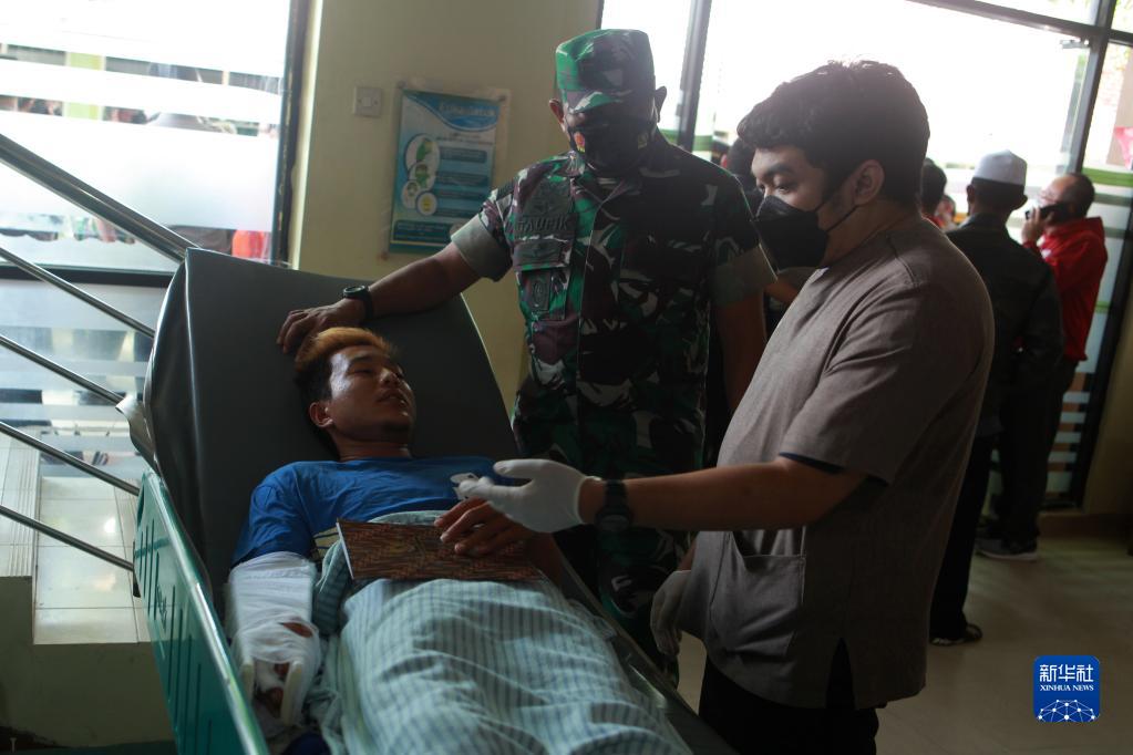 10月2日,在印度尼西亞東爪哇省瑪瑯市一家醫院,受傷人員接受治療。新華社發(巴尤·諾凡塔攝)