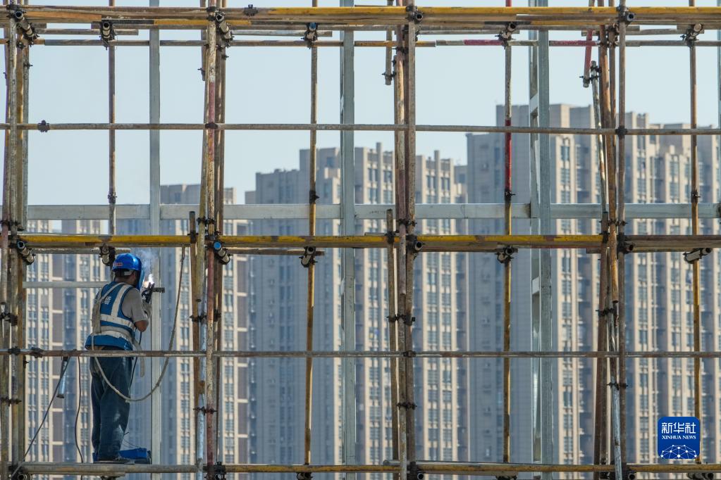 10月2日,中建三局一公司的施工人員在南京市建鄴區小米集團華東總部項目施工現場作業。