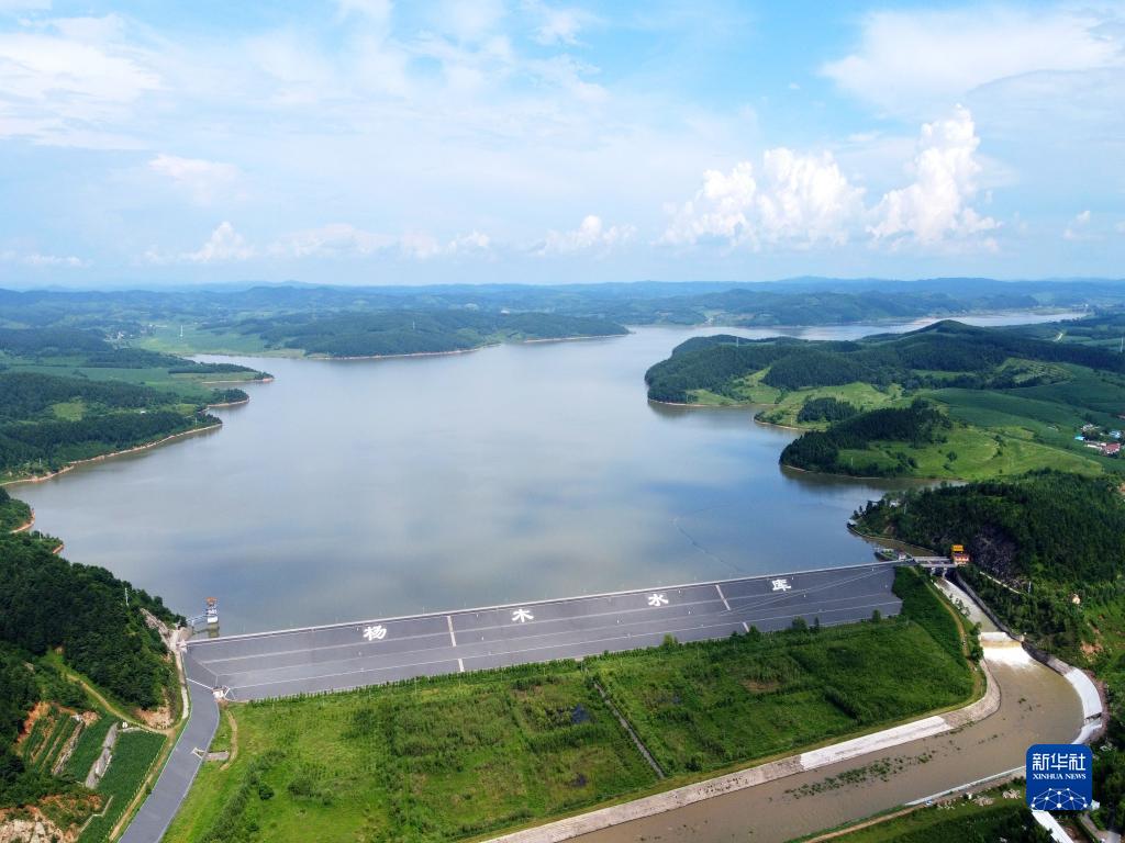 這是2022年7月18日拍攝的位于吉林省遼源市東遼河干流上游的楊木水庫(無人機照片 )。