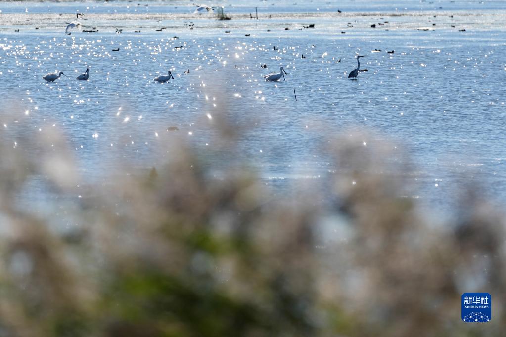 2022年9月9日,在位于黑龍江省的富錦國家濕地公園,一群水鳥在捕食。