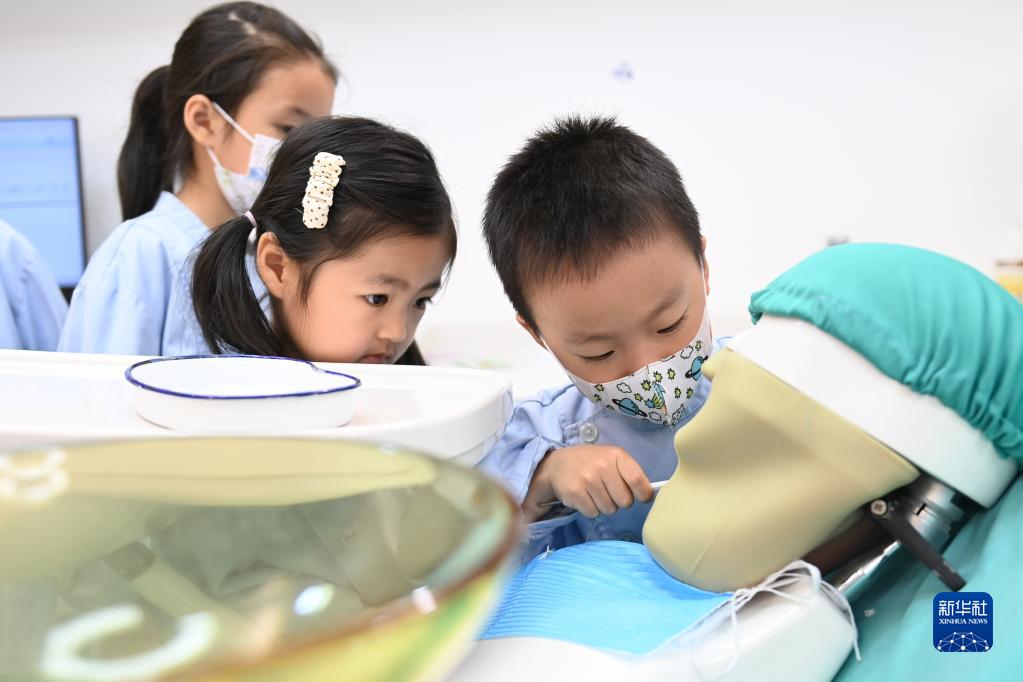 10月2日,小朋友在杭州青少年發展中心“Do都城”體驗“牙科醫生”。
