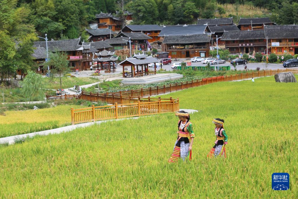 10月1日,游客在湖南省邵陽市隆回縣虎形山瑤族鄉大花瑤景區游玩。