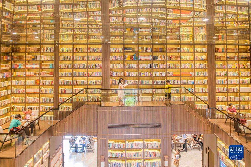 10月2日,在湖南省永州市江永縣桃花源圖書館,市民在閱讀圖書。