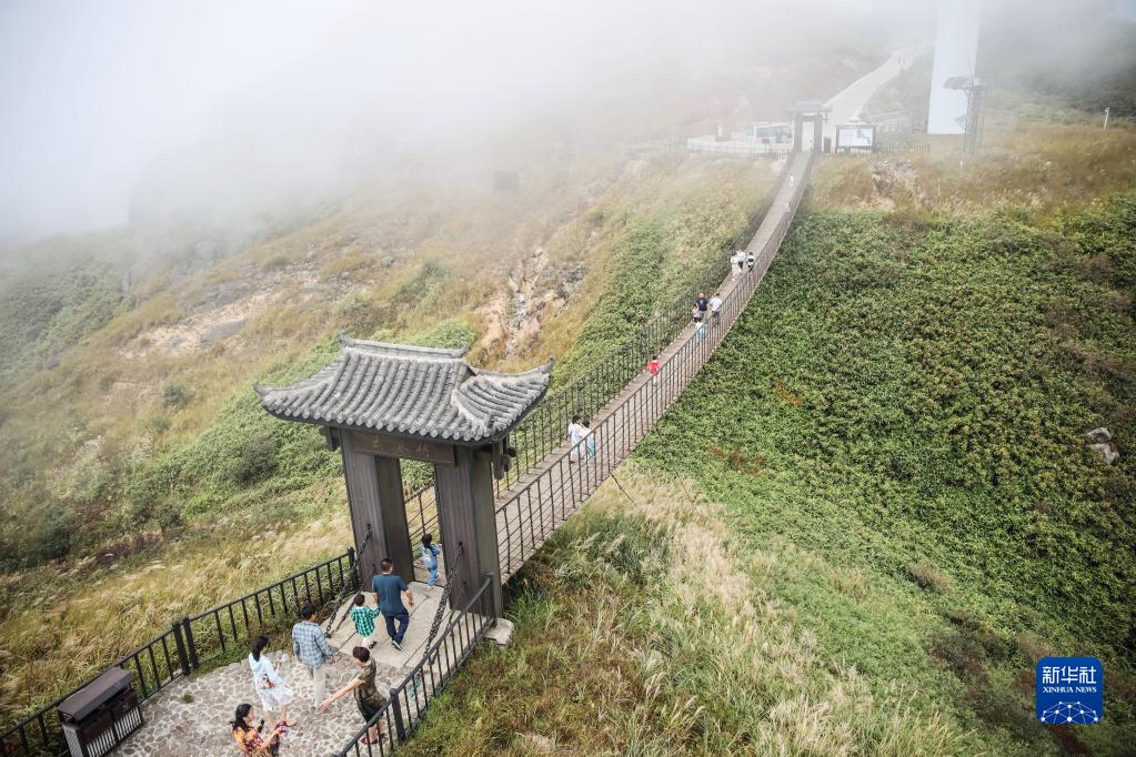 10月1日,游客在湖南省永州市藍山縣云冰山景區觀光游玩。