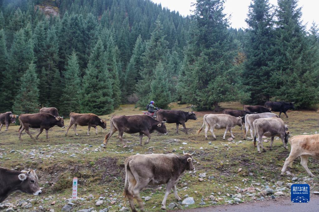新疆昭蘇:褐牛轉場出天山