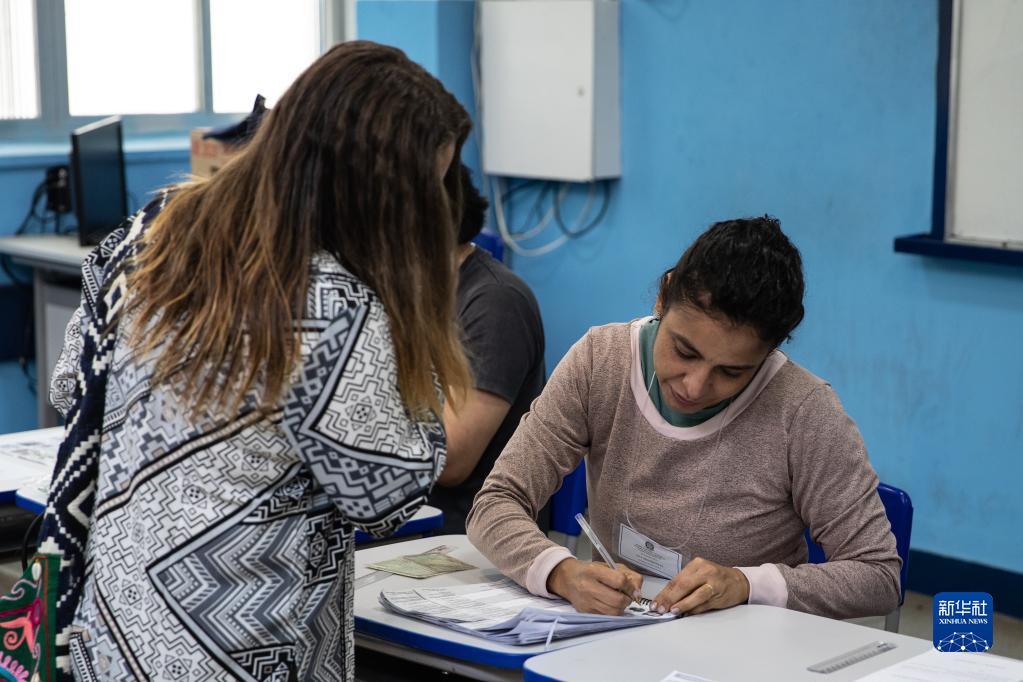 10月2日,在巴西里約熱內盧一處投票站,工作人員(右)為選民進行登記。