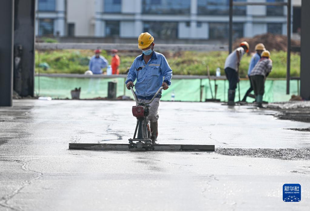 10月2日,工人在位于海南洋浦經濟開發區的申能電氣風電新能源裝備產業項目工地施工。
