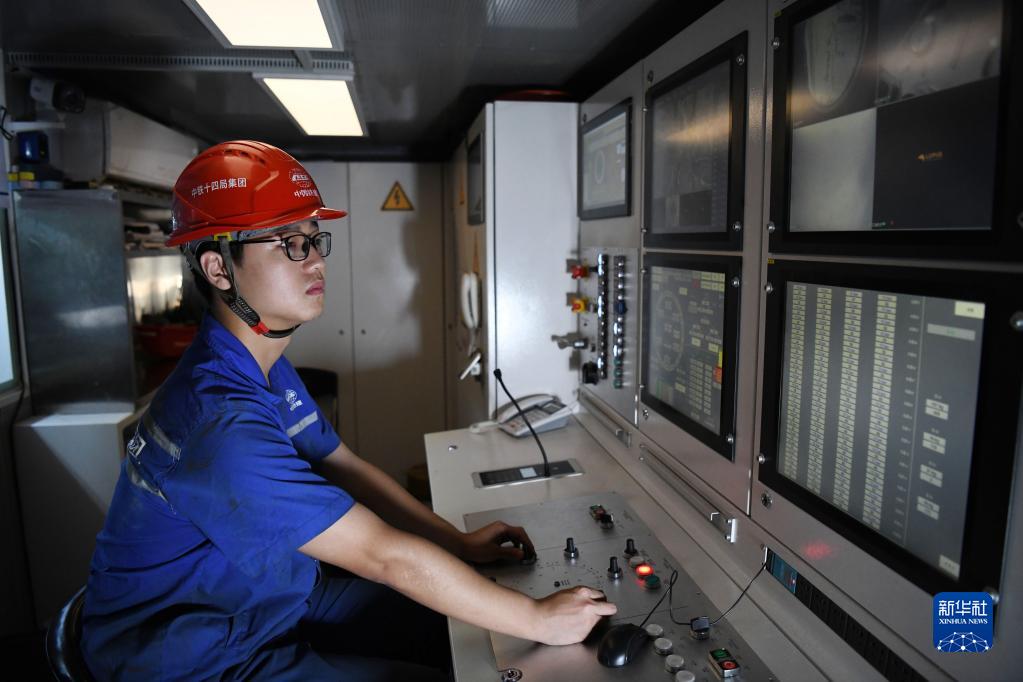 10月3日,盾構機駕駛員在蕪湖城南過江隧道施工現場作業。