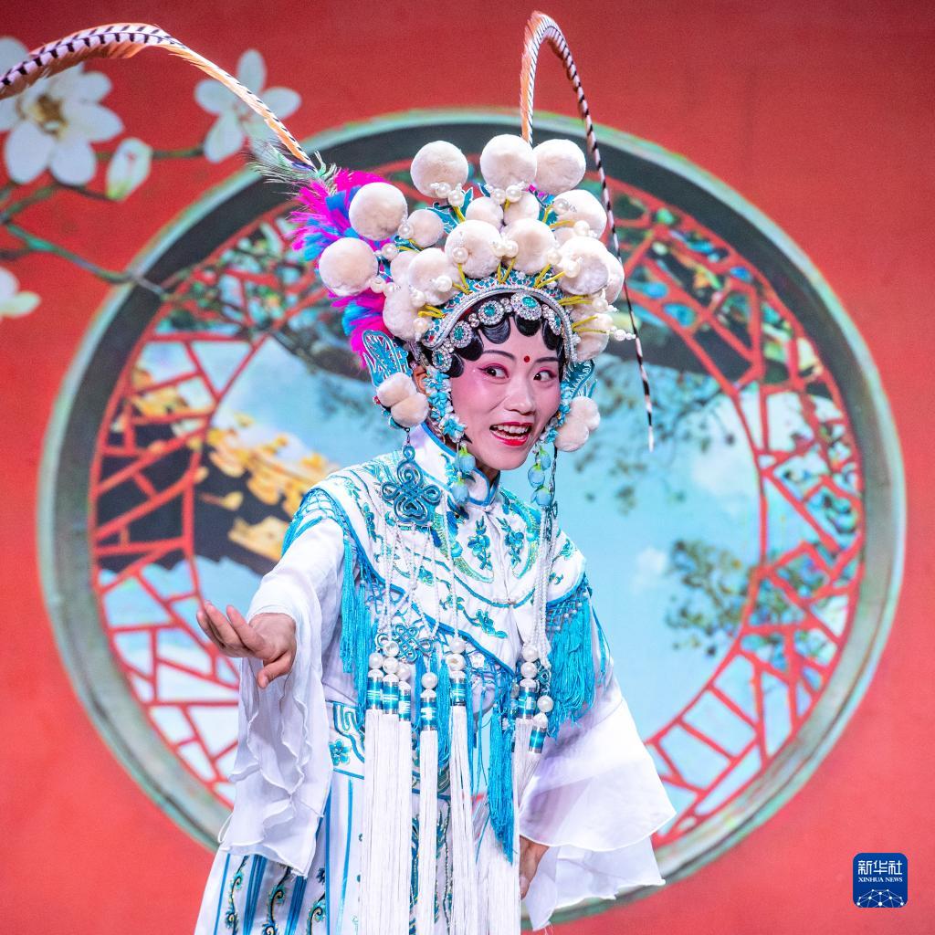 10月2日,在千年古鎮磁器口后街的“戲韻國潮館”內,演員在臺上表演川劇。
