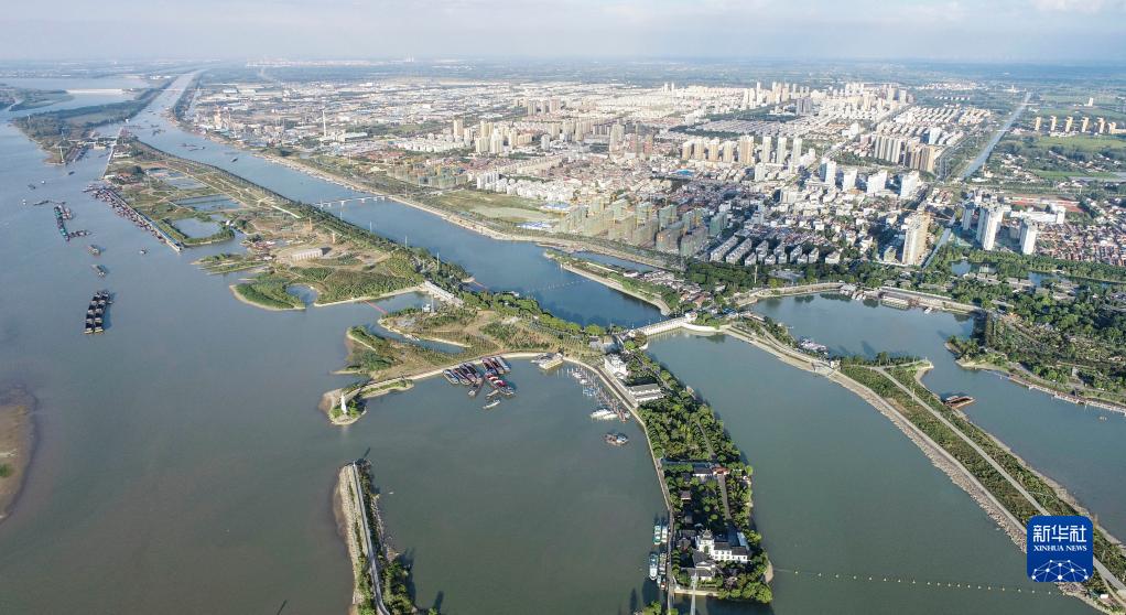 9月26日,貨船在江蘇淮安境內的洪澤湖和蘇北灌溉總渠行駛(無人機照片)。