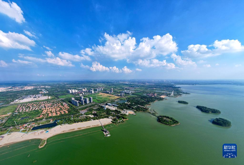 江蘇省宿遷市駱馬湖東岸景色(無人機照片,8月12日攝)