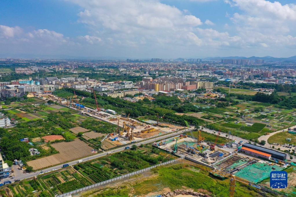 這是廣花城際鐵路白云城市中心站建設工地(10月3日攝,無人機照片)。
