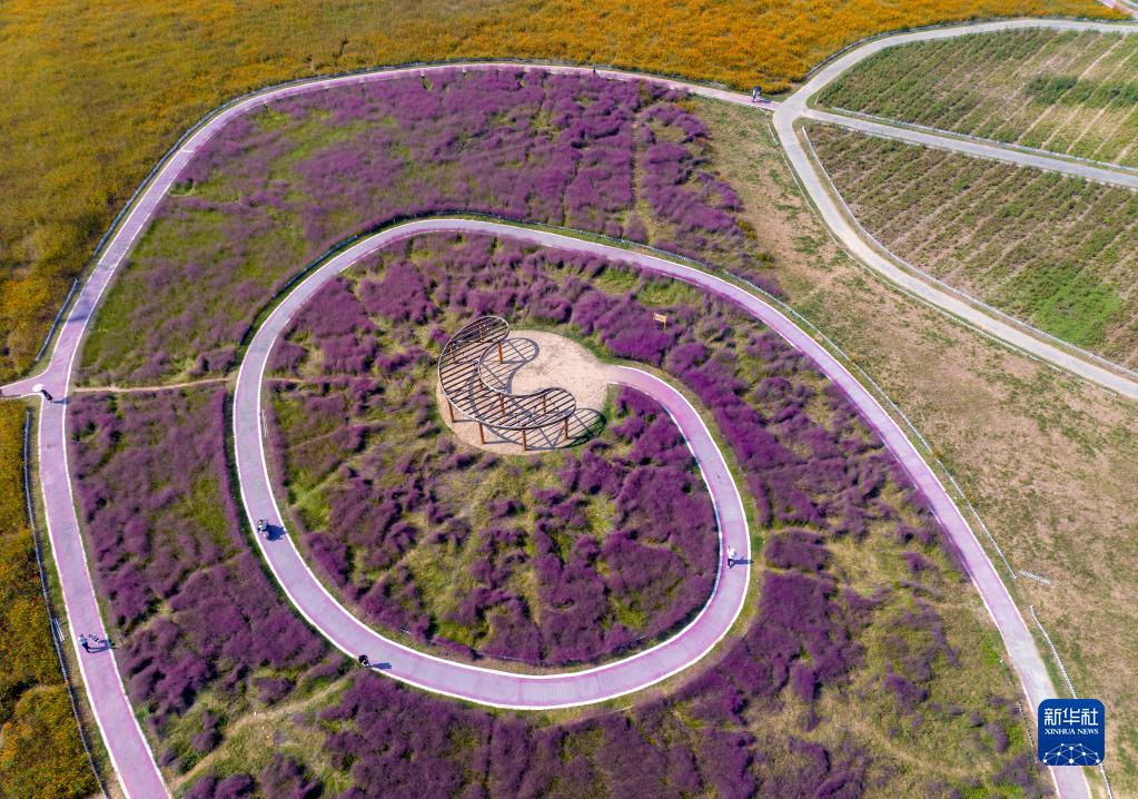 10月3日,游客在江蘇省淮安市百花園游玩(無人機照片)。