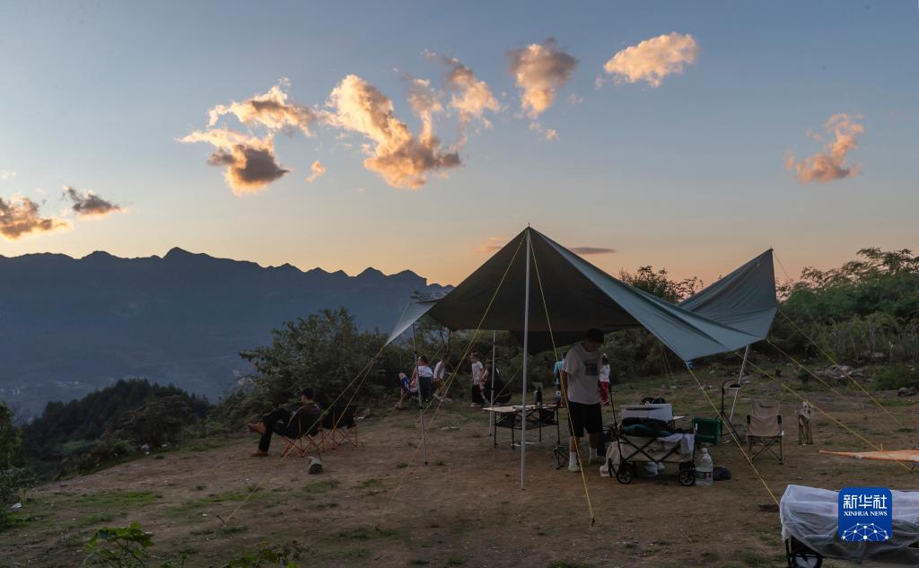 10月2日,游客在重慶市南川區三泉鎮馬嘴村露營游玩。
